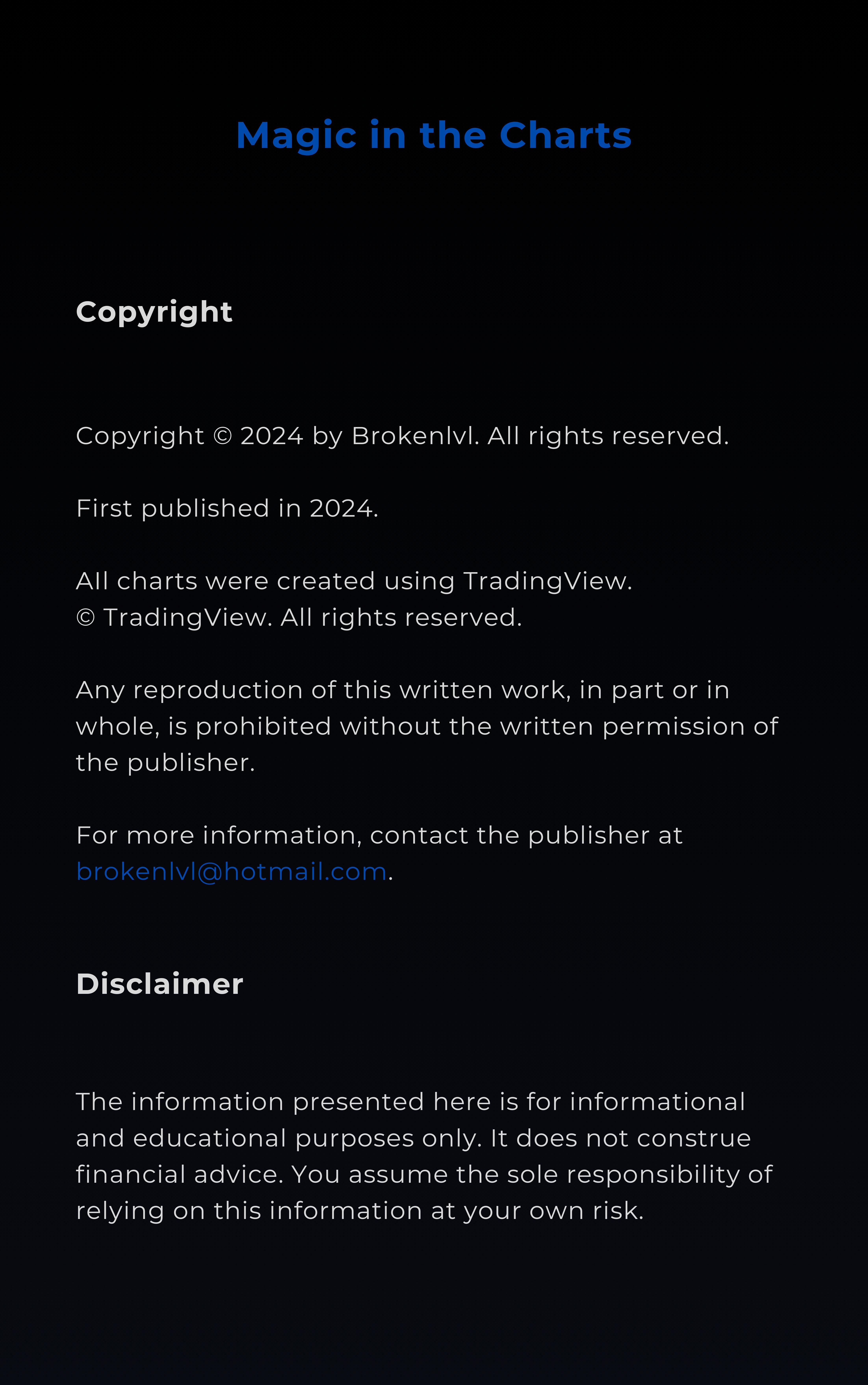 Magic in the Charts was written by Brokenlvl, a forex and crypto day trader and investor with over seven years of experience. Since the eBook was published in Feb. 2024, zero negative reviews were given. All traders found great value in the eBook. You can check out the reviews at the end of this page.